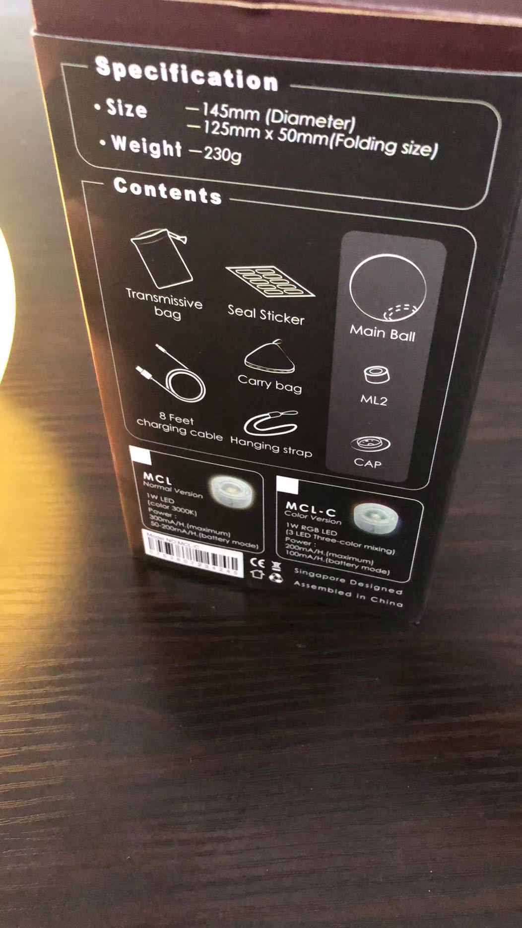 Lighting type: 0.5W LED light