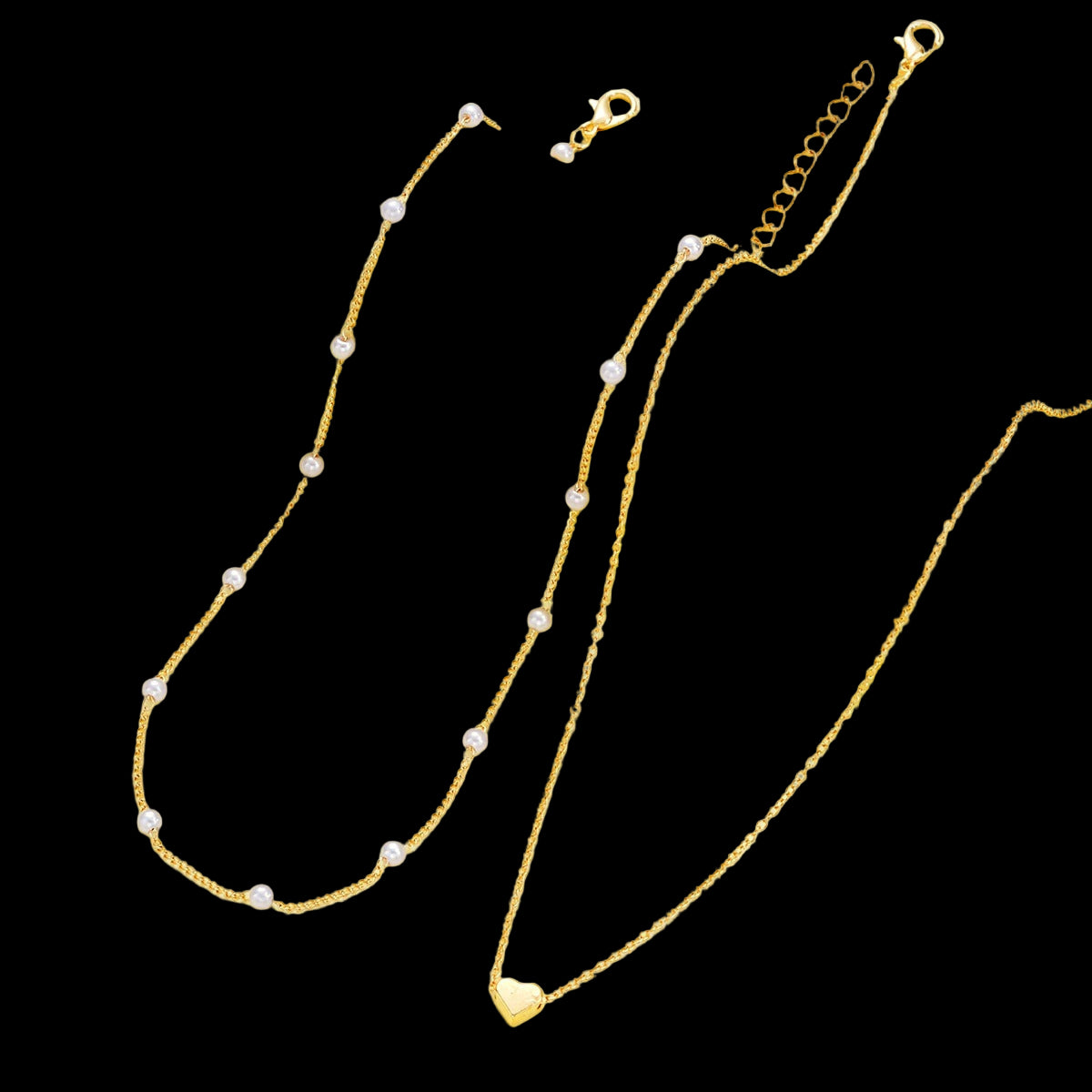 Color: LYXL-gold Pearl Heart necklace set, LYXL-Silver Pearl Heart necklace set