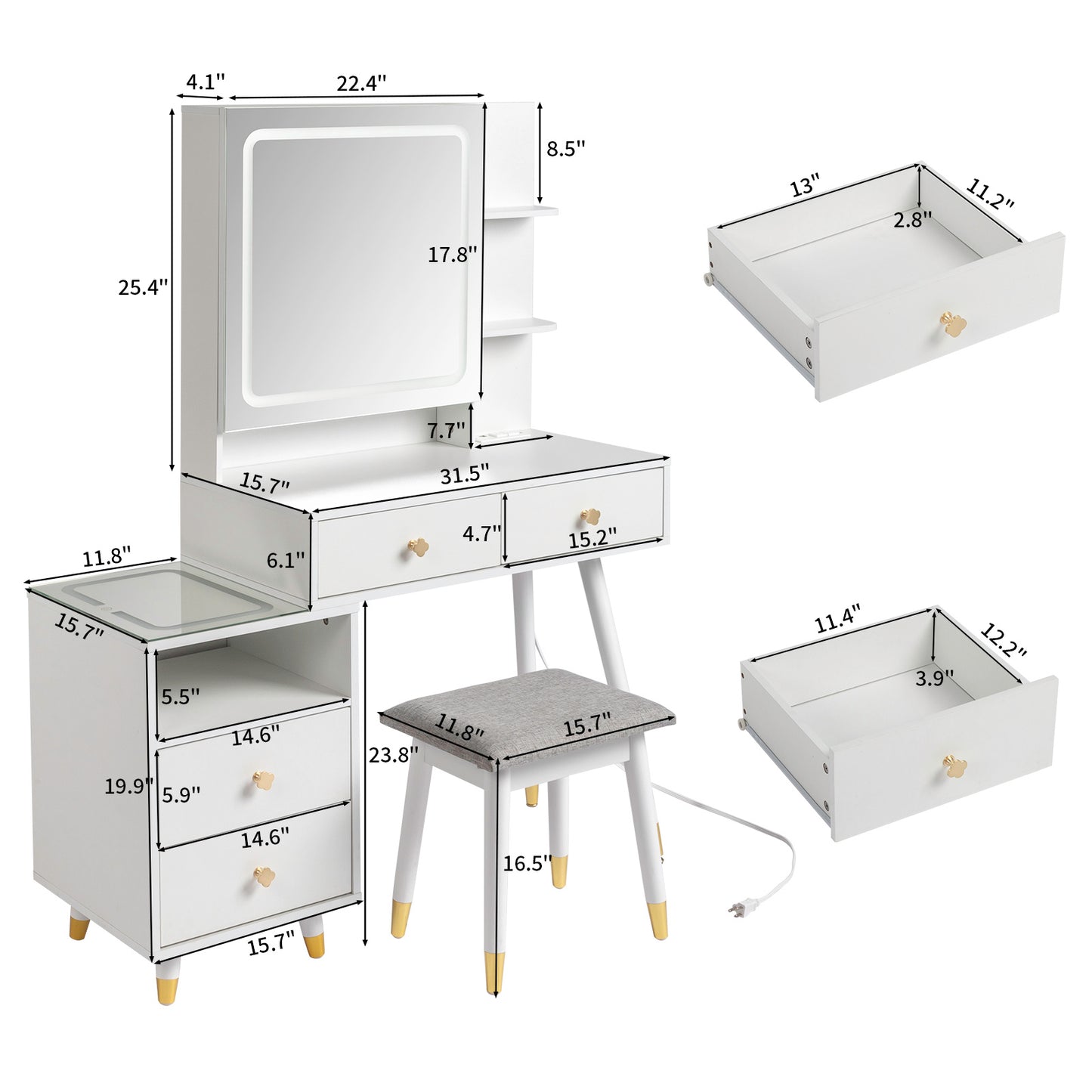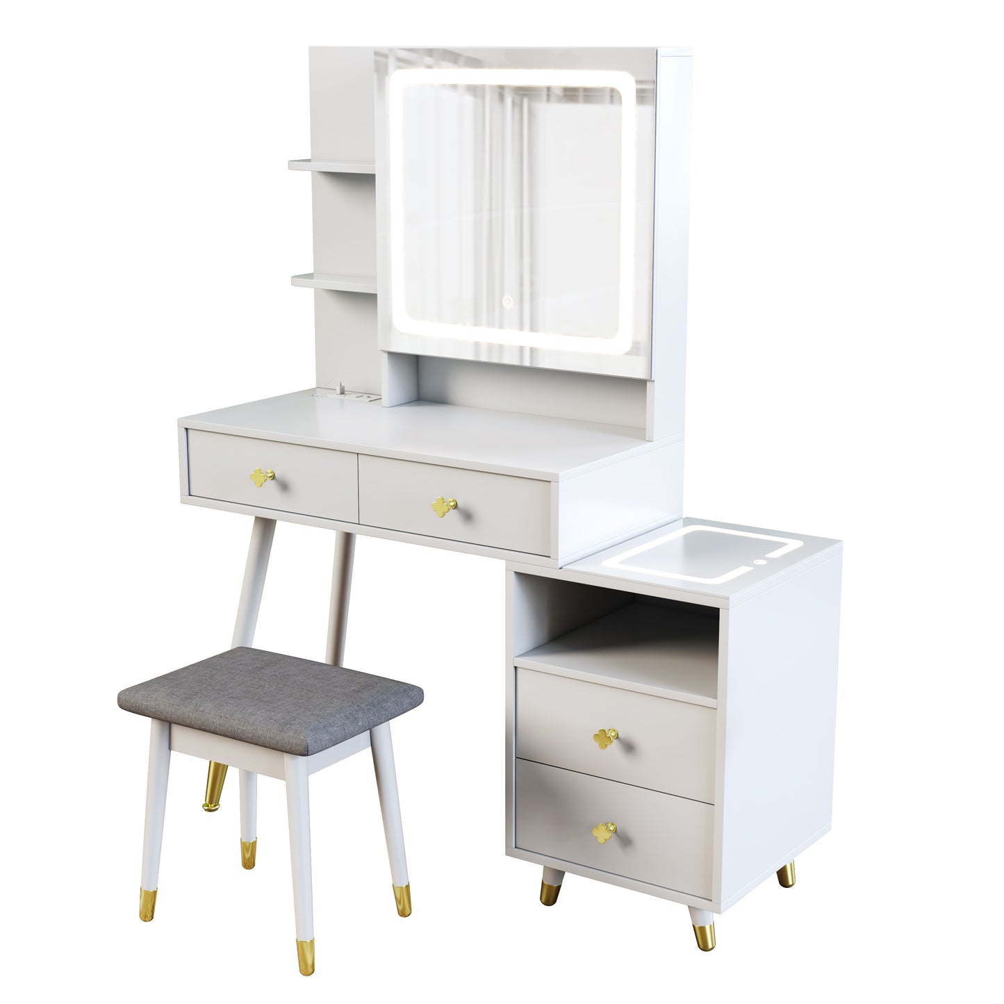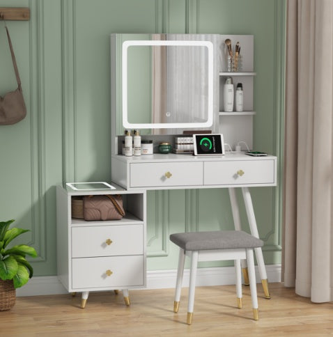 4. With dressing stool - white dressing table + light gray stool surface