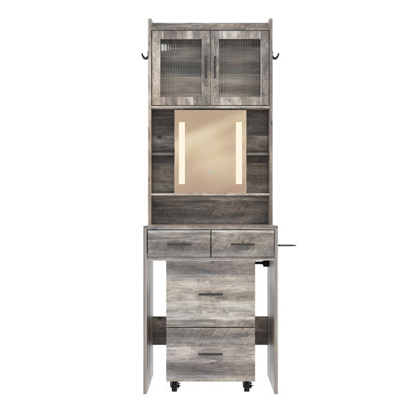 Transform your small space into a stylish and functional beauty station with this compact vanity desk set. Designed with space-saving features, it offers a clever combination of a sliding mirror, ample storage, and a comfortable stool, perfect for small bedrooms or apartments. The sleek, modern design is enhanced by adjustable LED lighting and built-in charging stations, making your daily routine more convenient and enjoyable. Whether you're prepping for the day or winding down at night, this vanity set offers everything you need to create a clutter-free, elegant beauty corner.