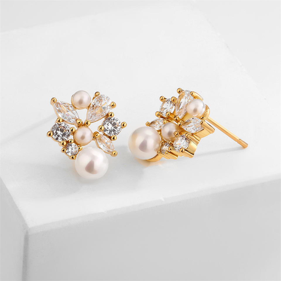 RAKOL French Square Diamond Pearl Stud Earrings Jewelry/Accessories