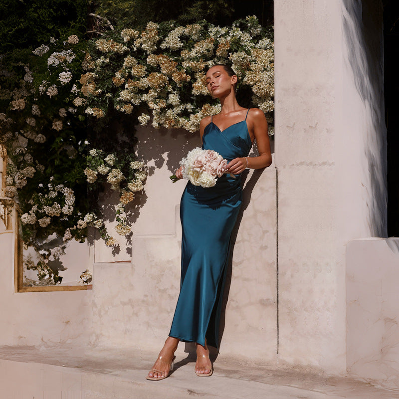Spaghetti Straps Sleeveless Slit Slim-fitting Dress Women's Garments Apparel / Clothing