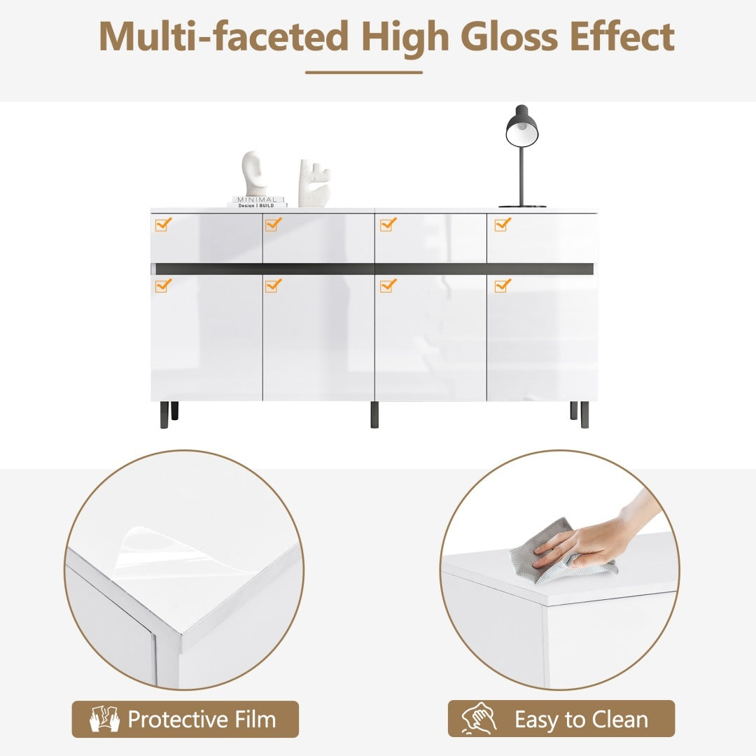 Product Name:Storage Cabinet, Sideboard Buffet with 4 Drawers 4 Doors , Highboard Cabinet with Adjustable Shelves, Chest of Drawers, Standing Cabinet, Cupboard Buffet for Living Room, Kitchen, 160*40*68cm, White