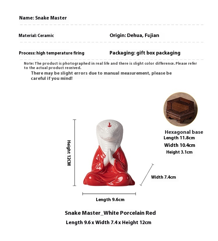 Size: Spirit snake [cyan] Ceramic, spirit snake [red] Ceramic, spirit snake [Gray] purple sand, spirit snake [yellow] purple sand, spirit snake [cyan] Ceramic hexagonal wooden base, spirit snake [red] Ceramic hexagonal wooden base, spirit snake [Gray] purple sand hexagonal wooden base, spirit snake [yellow] purple sand hexagonal wooden base